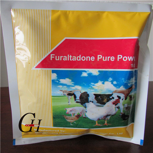 Furaltadone drug, antibacterial spectrum is wide. It is of antimicrobial effect to gram-positive bacteria, gram-negative bacteria, such as staphylococcus aureus, escherichia coli, Streptococcus pyogenes and so on. This product is not easily absorbed in intestinal tract after take orally, so it is mainly used to ntestinal infection, also the treatment of coccidiosis, blackhead disease in turkey.