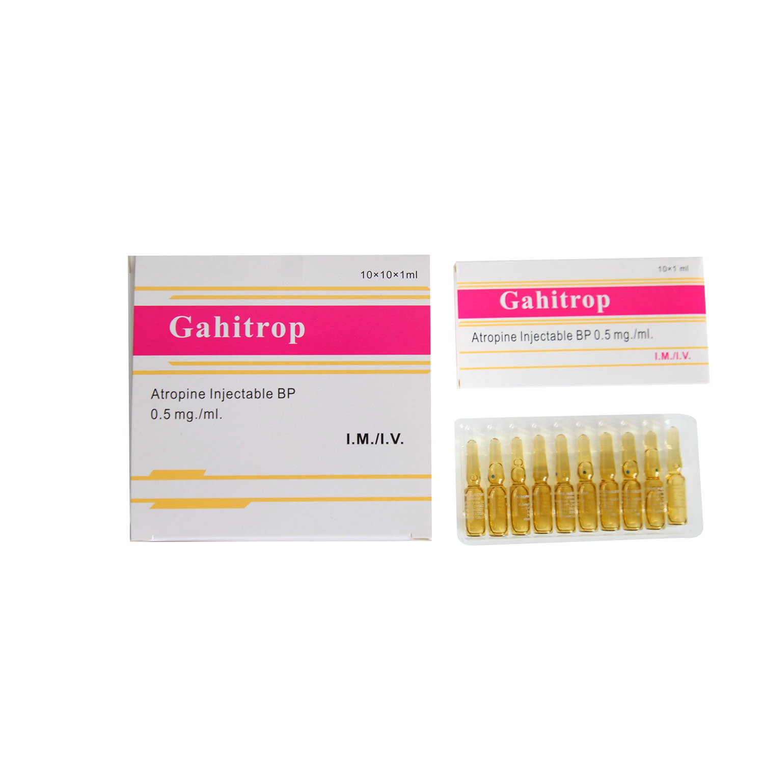 Anticholinergics Atropine Injection 0.5 mg/ml used for secondary to low sinoatrial node function and ventricular ectopic section. Resistance to shock. Save organophosphate poisoning. Anticholinergics Atropine Injection is used in the treatment ofgastrointestinal spasmolysis and gastric dynamics. Sinus atrial block of vagus nerve caused by excessive excitement, atrioventricular block, such as slow core disorders.