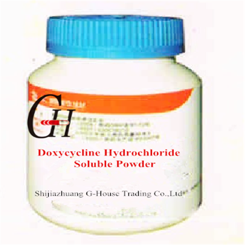 Doxycycline Hydrochloride Soluble Powder. Mainly used for a variety of pathogens caused by a variety of respiratory diseases such as infectious bronchitis, infectious roar bronchitis, rhinitis, chronic respiratory disease and other viral diseases caused by coughing, sneezing, thirst, asthma , Breathing accent, stretching the neck breathing, cough with blood mucus, tears, swelling, shaking his head and other symptoms.