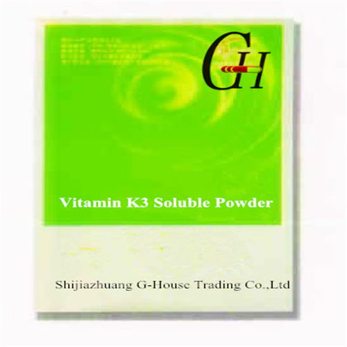 Vitamin K3 Soluble Powder. Vitamins. Involved in the synthesis of intrahepatic prothrombin for vitamin K deficiency caused by bleeding. Such as: coccidiosis, necrotizing enteritis, long-term use of Antibiotics caused by vitamin K deficiency caused by bleeding. Vitamin K3 Soluble Powder product can be used to treat vitamin K3 deficiency caused by hemorrhagic disease, such as long-term use of antimicrobial drugs, due to inhibition of bacteria in the body, causing vitamin K3 deficiency caused by bleeding.